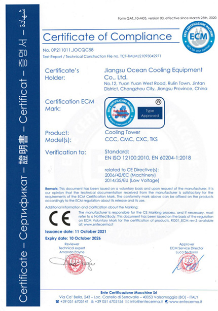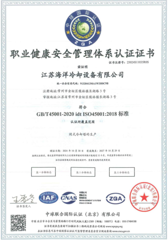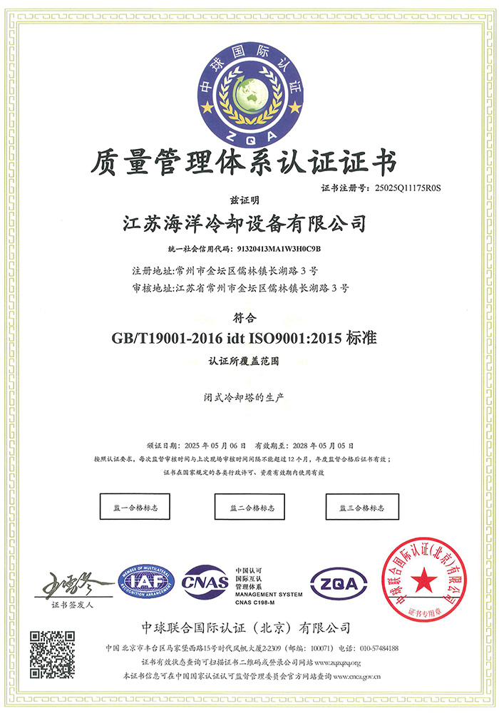 公司主要从事各类冷却塔的研发设计、制造及安装业务,可根据用户需求提供系统的换热解决方案。目前公司已通过多项体系认证,并拥有多项认证证书及荣誉证书。